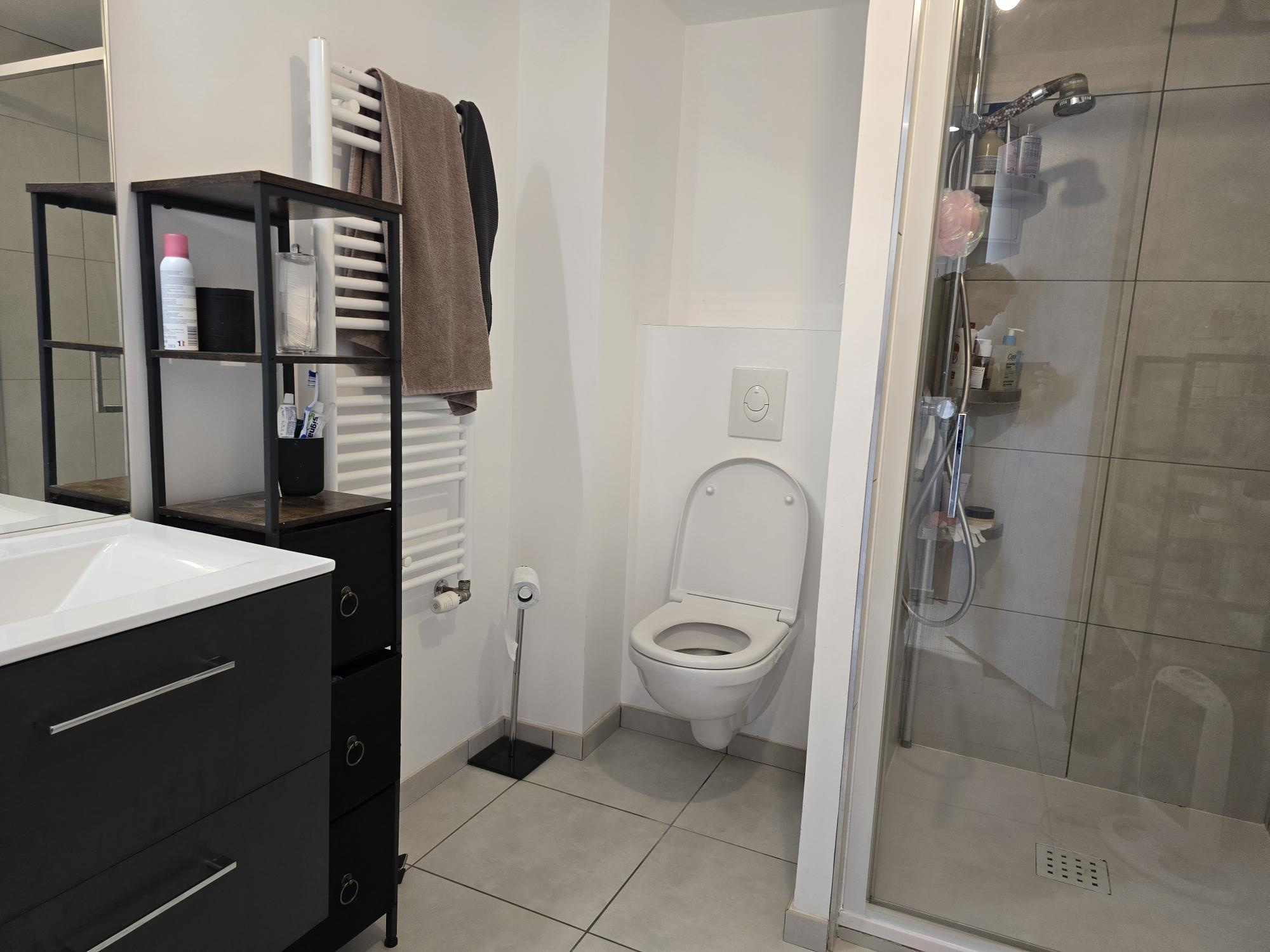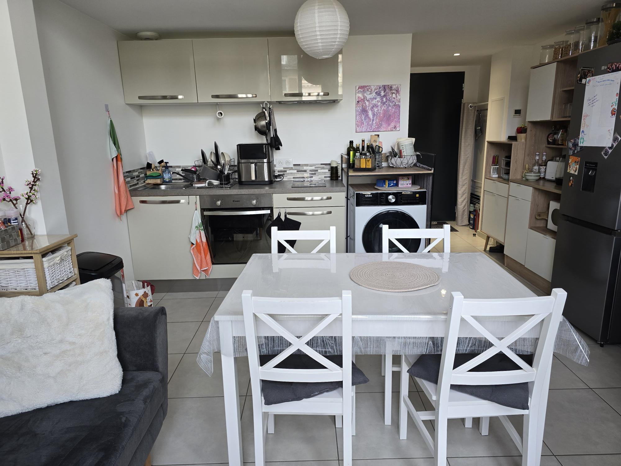 Dans une résidence récente de bon standing, au 1er étage avec ascenseur, appartement T2 en duplex d'une superficie de 36 m2 comprenant: entrée, séjour carrelée, cuisine ouverte aménagée (plaques, four, meubles), chambre en parquet, salle de douches avec wc.