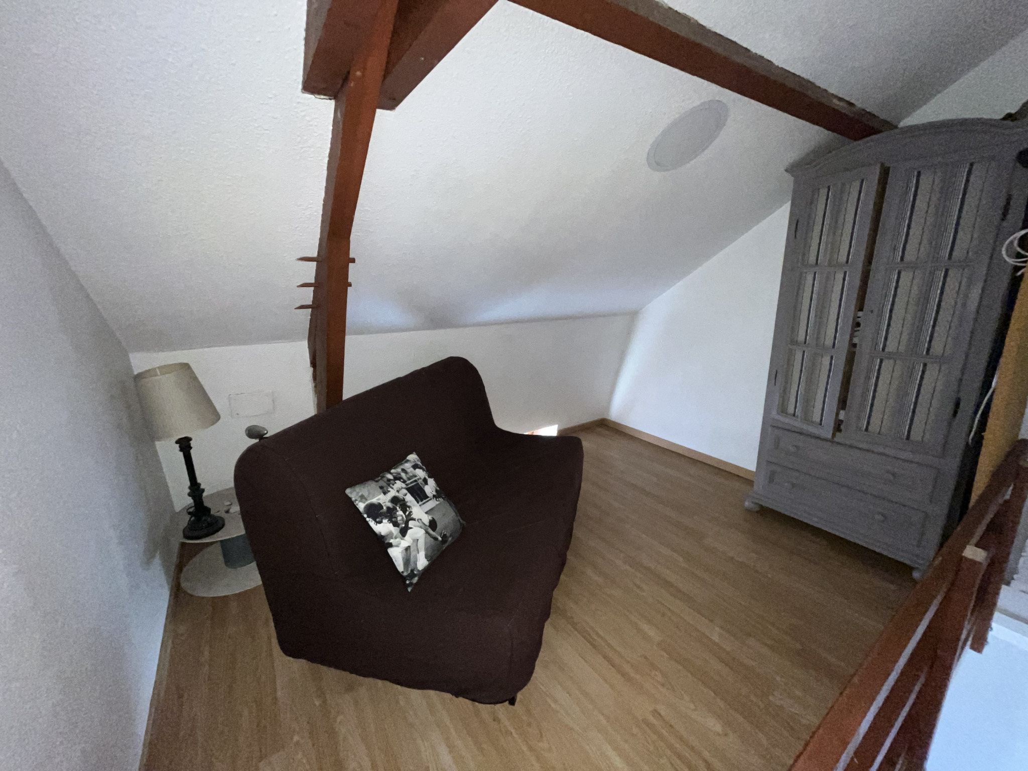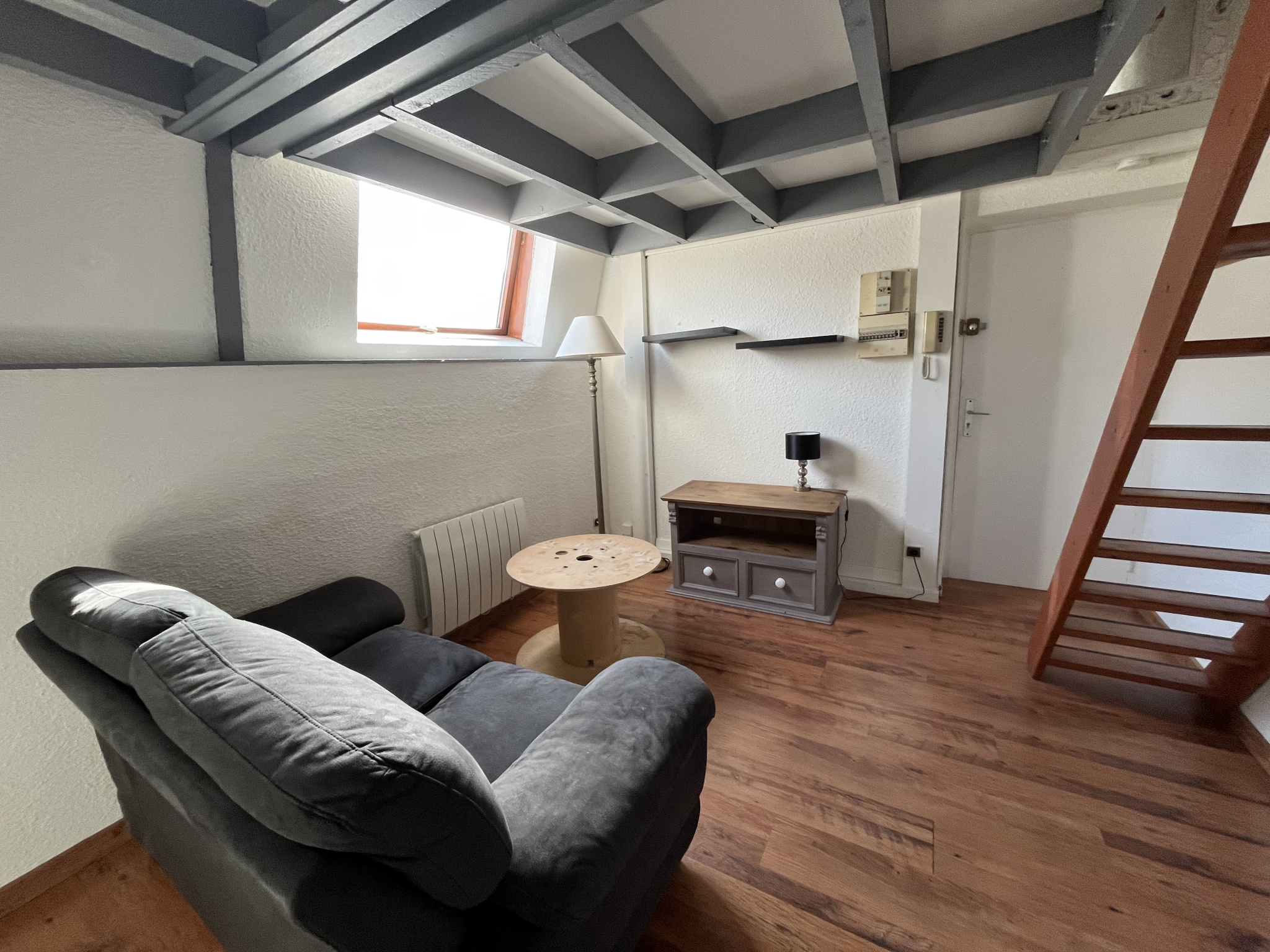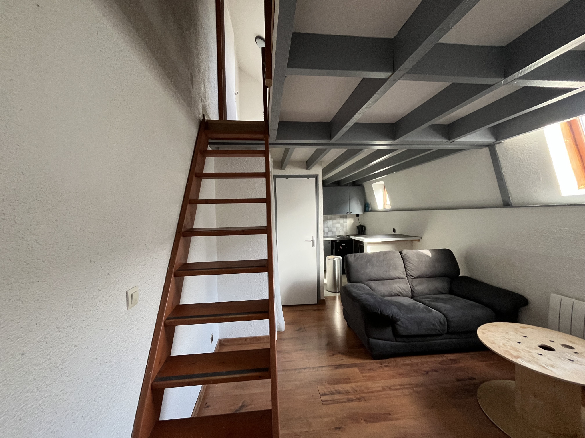 Dans une petite copropriété au calme, un appartement type 2 meublé en duplex de 28.66 m2, situé au 2ème étage comprenant : Une pièce principale (un canapé, une table basse, un meuble TV, cuisine équipée ouverte sur séjour (réfrigérateur, plaques, micro-ondes), une salle de douche avec WC et lave-linge, à l'étage un espace nuit avec canapé convertible et armoire de rangement, une chambre avec lit, matelas, commode, chevet.