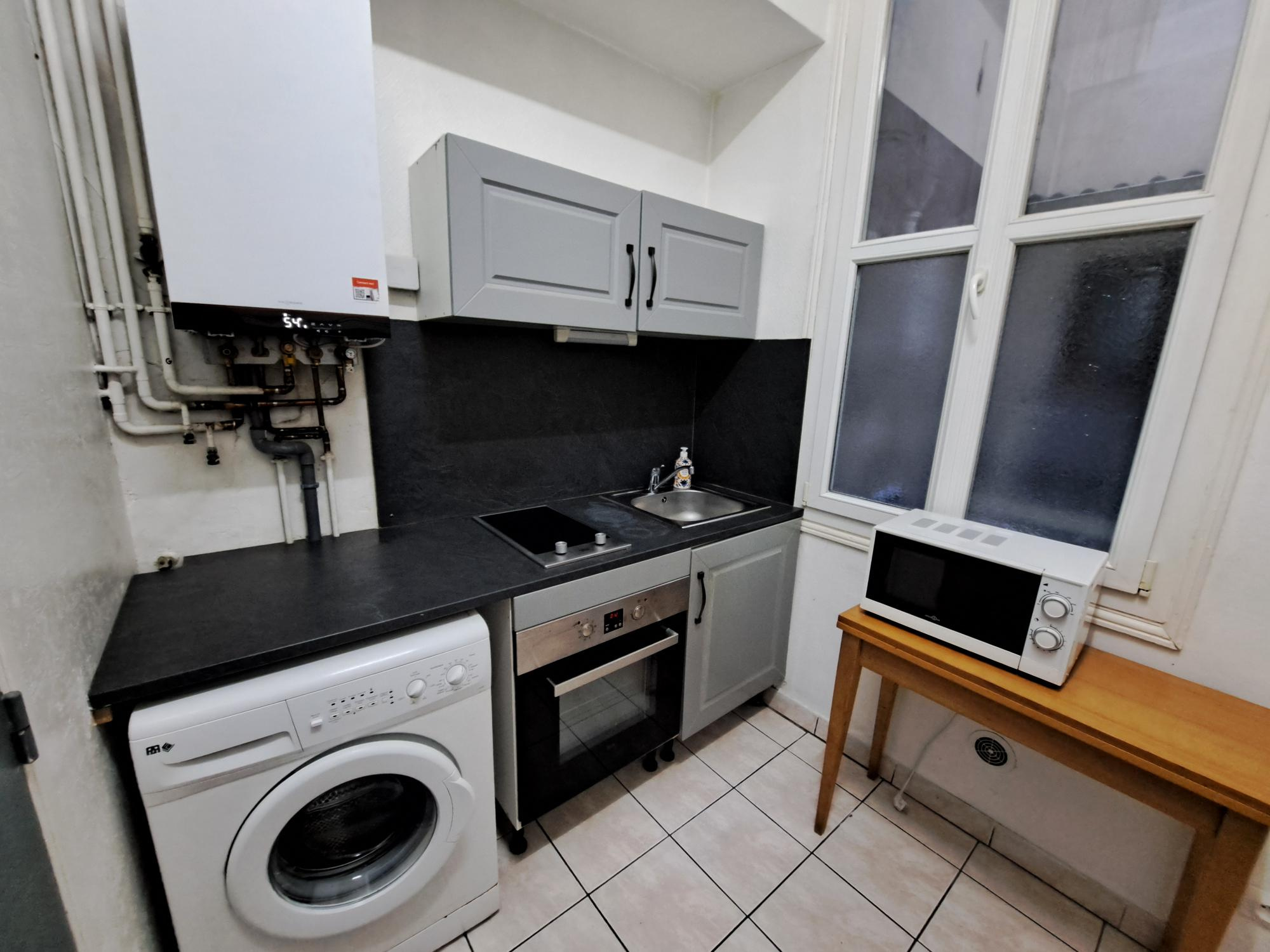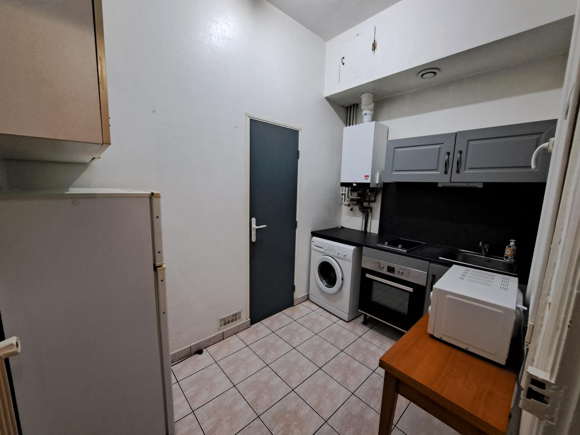 Grand studio meublé au rez de chaussée d'un ilmmeuble bien entretenu d'une superficie d'environ 30 m2 comprenant une entrée en parquet, une pièce principale en parquet (canapé clic clac, table, chaises, bureau, placard de rangement), une cuisine équipée séparée (plaque, four, micro-ondes, lave linge), une salle de douche avec WC. un local vélo privatif. Chauffage individuel gaz (chaudière récente). Disponible de suite.