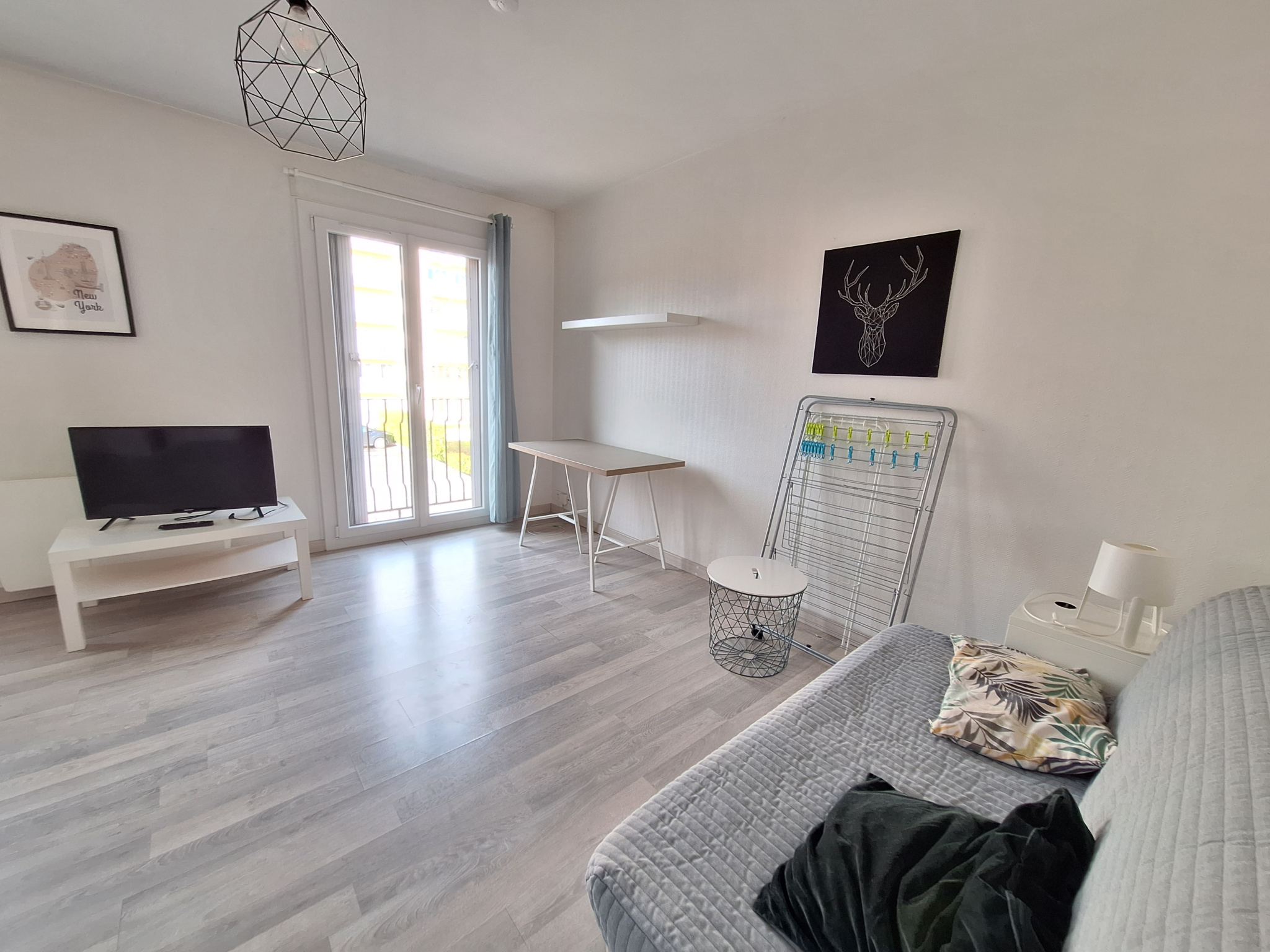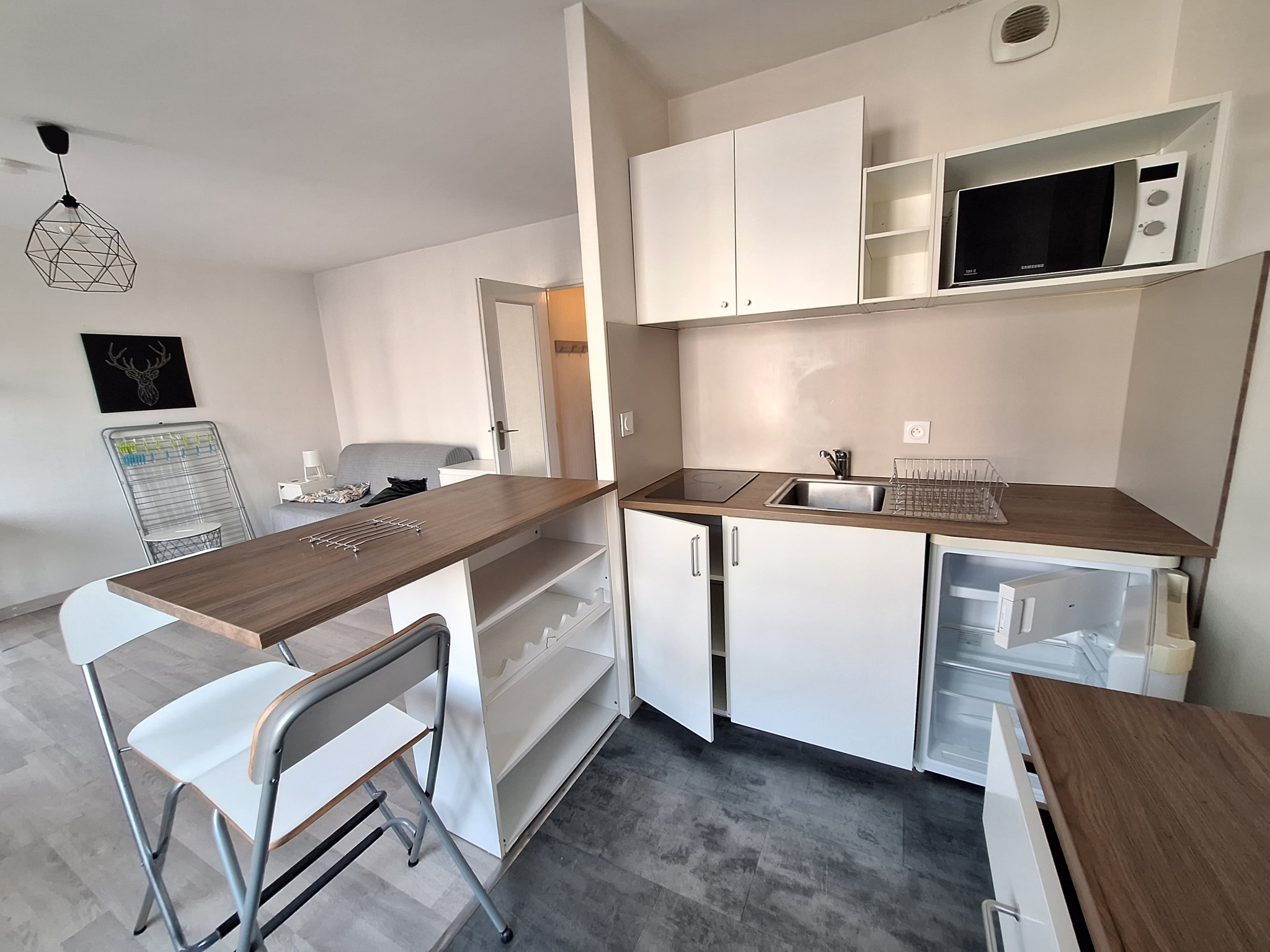 Comprenant une entrée en parquet, un séjour lumineux en parquet, une cuisine équipée d'une cuisinière (plaque et four) et d'un réfigérateur, une chambre en parquet, une salle d'eau avec WC.