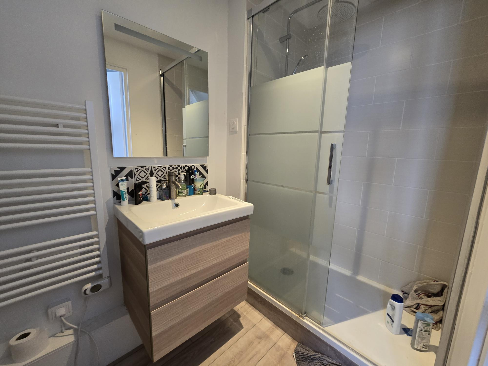 Dans un immeuble de standing situé en plein centre ville de Reims, Cours Langlet, studio meublé de 17.38 m2 loi Carrez (25.83 m2 au sol) comprenant pièce nuit avec lit et nombreux placards, coin salon avec cuisine aménagée, salle de douches avec wc. Chauffage individuel électrique (radiateurs et ballon d'eau chaude très récents).