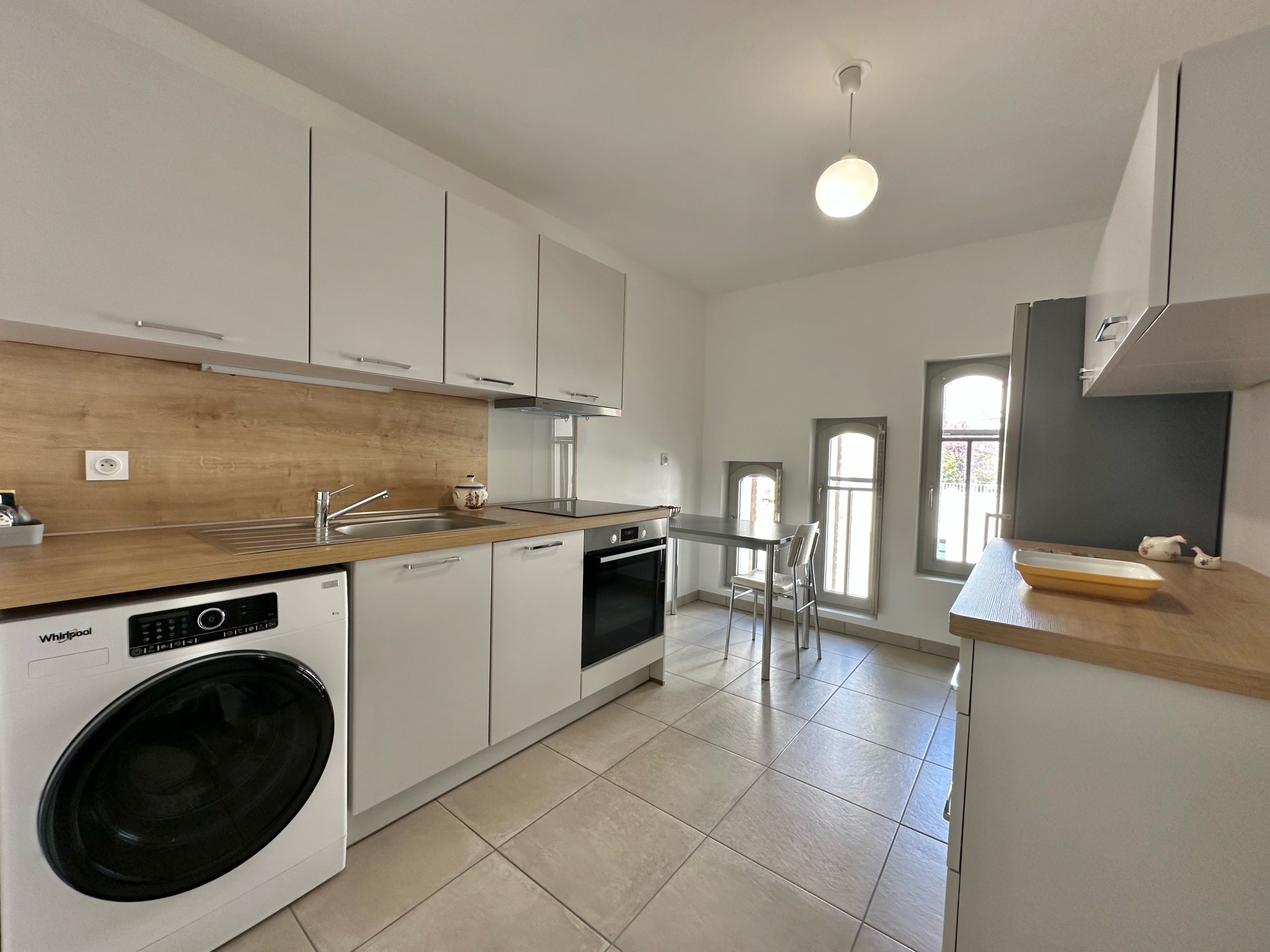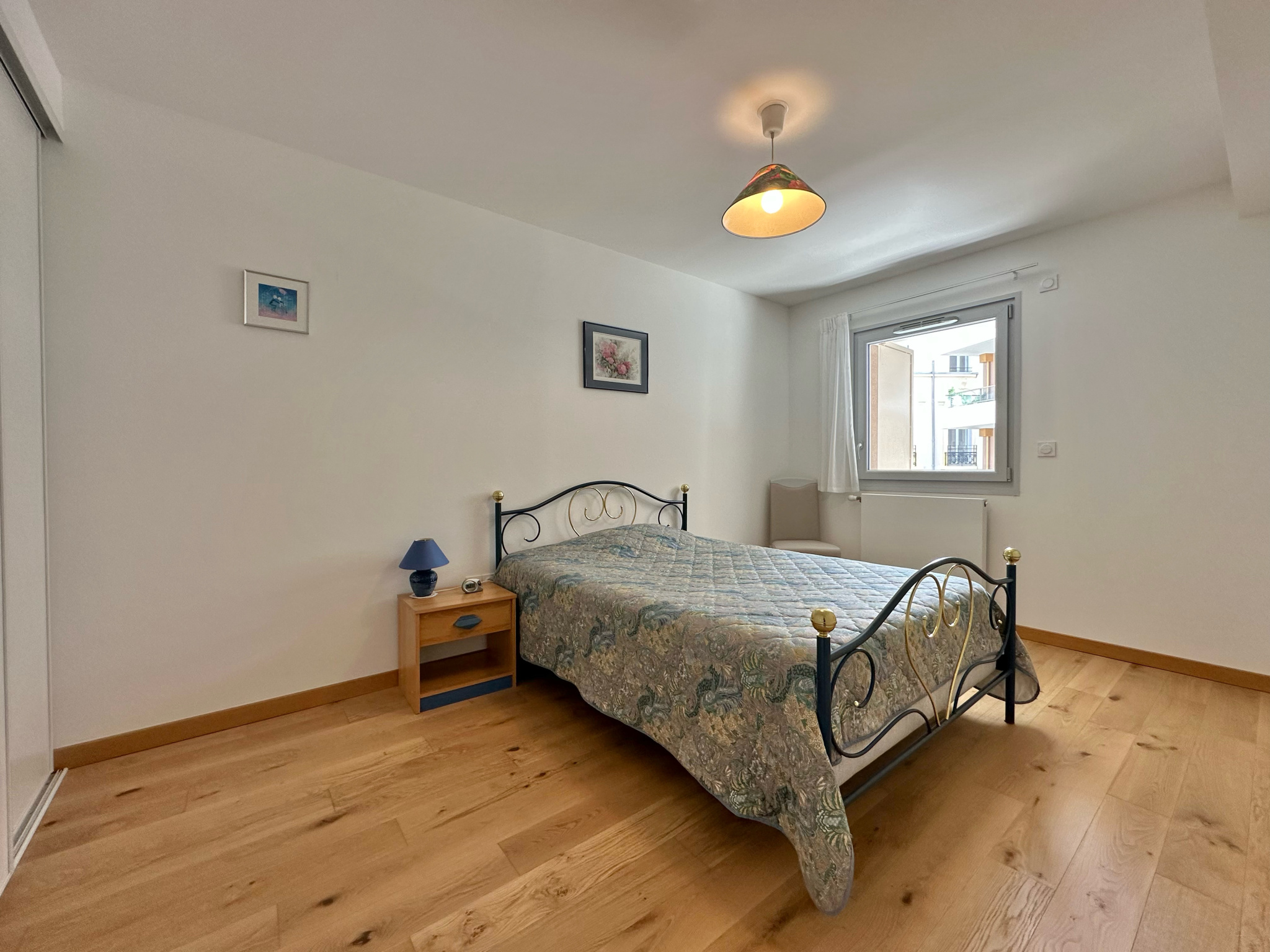 Appartement proposant : une entrée avec placard, un séjour de 29.40 m2, une cuisine dinatoire séparée (meublée et équipée), 2 chambres en parquet et avec rangements (de 10.20 m2 et 12 m2), une salle de bain, un WC séparé avec lave-mains.