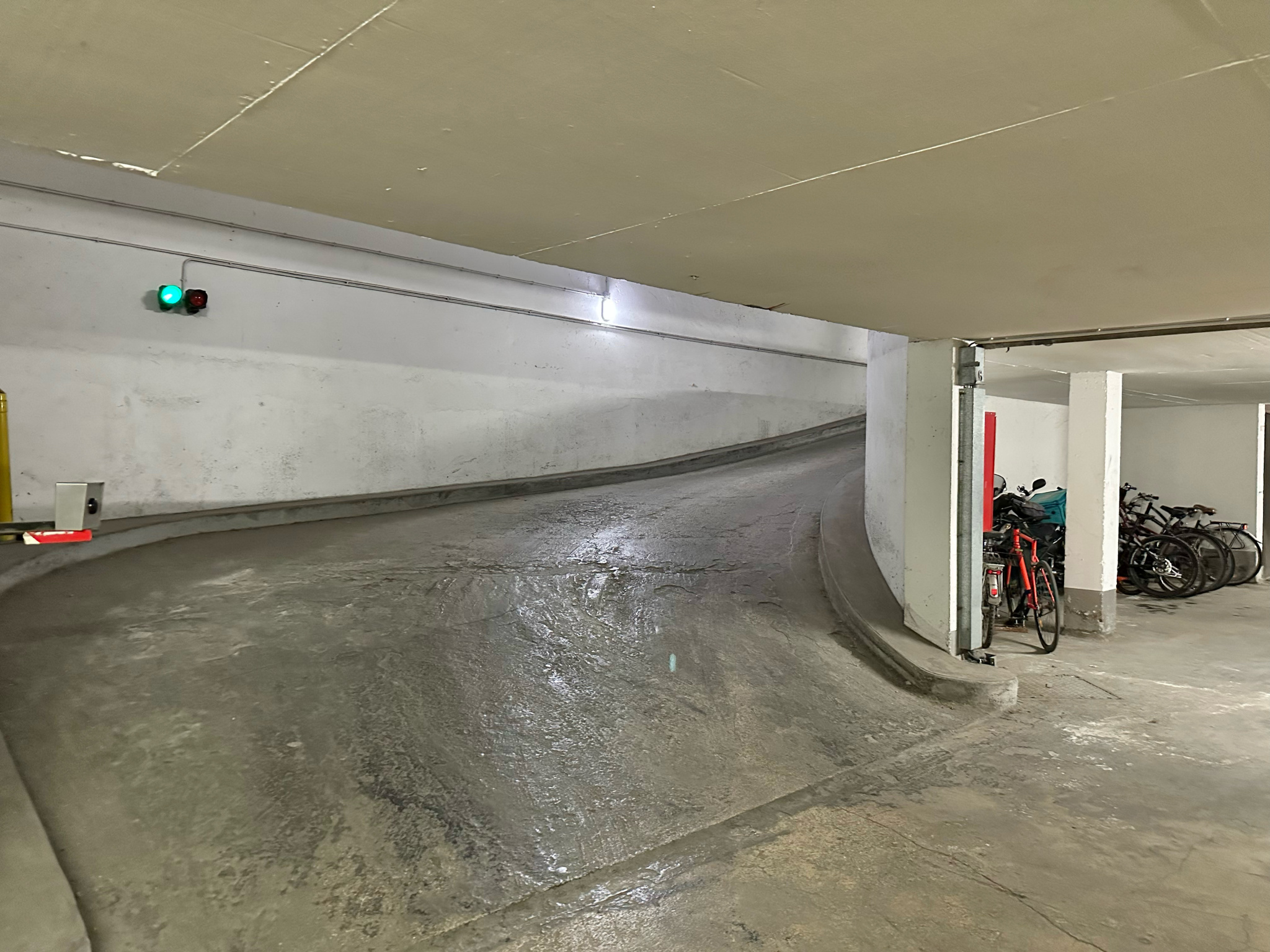 Idéal pour petite voiture (2.30 m de large et 5 m de long) ou moto (passage de 2.22 m de largeur). Possibilité de fermer le stationnement par une porte sectionnelle à installer.